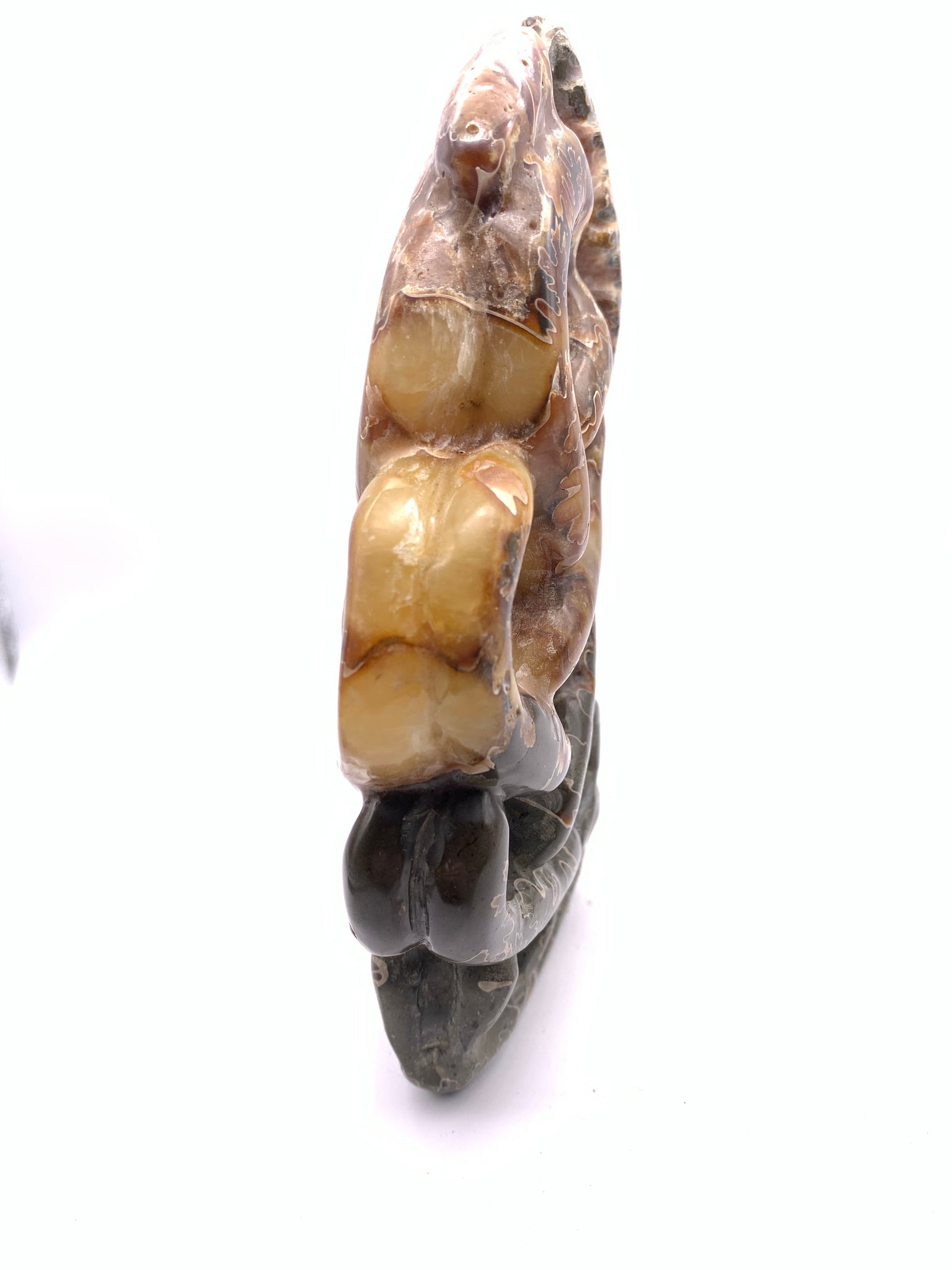 The name ammonite refers to the fossil shells of a class of extinct invertebrates called cephalopoda, they closely resembled the squid. They became extinct approximately 65 million years ago. Fossil ammonites can help us to connect to our ancestral knowledge and are useful tools for past life recall. These fossils are known to assist in personal growth and transformation. Keep ammonite close by when starting a new job or moving to a new city. Ammonite can also help us to overcome addiction and bad habits, ending negative cycles.