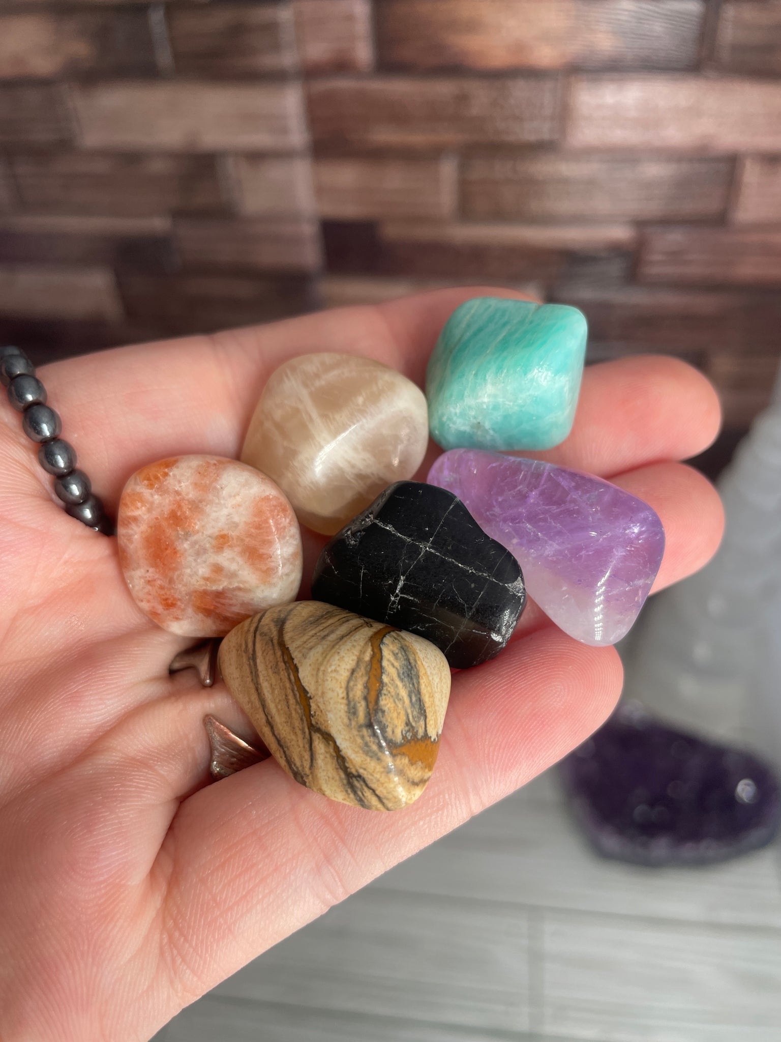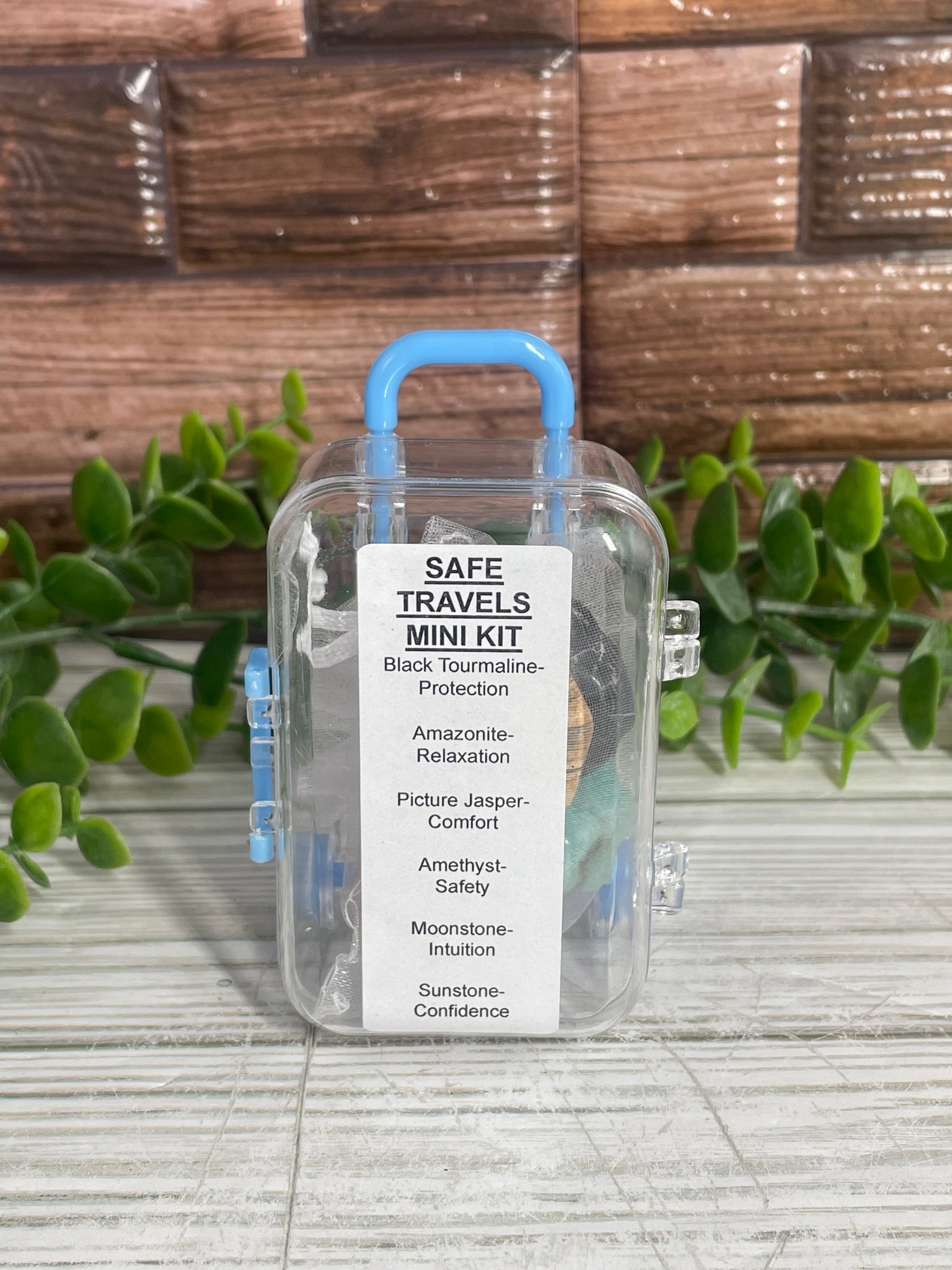 (1) Safe Travels Mini Kit including Black Tourmaline, Amazonite, Picture Jasper, Amethyst, Moonstone and Sunstone