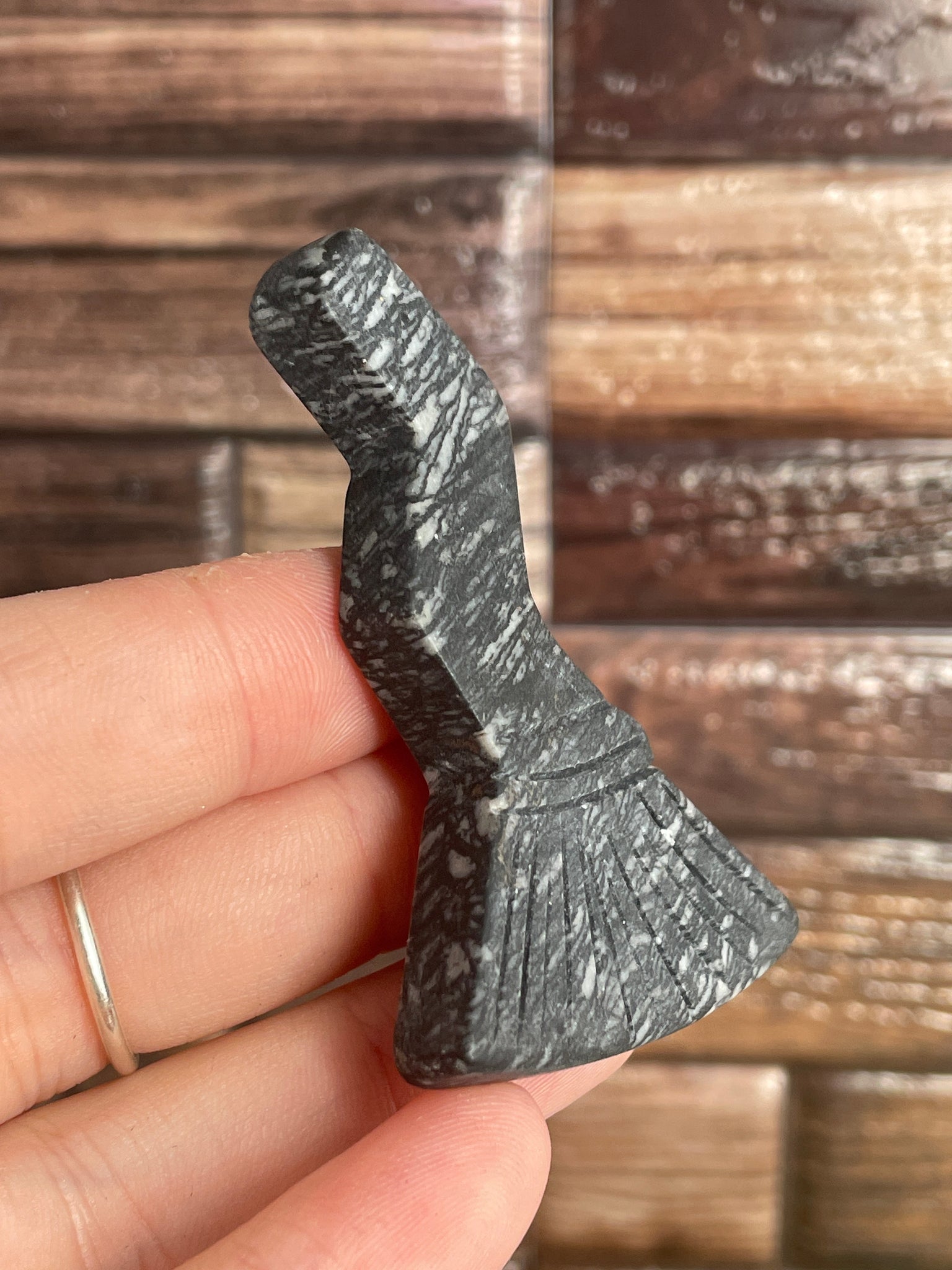(1) Spider Web Jasper broom carving measuring approximately 2.5 x 1.75 inches
