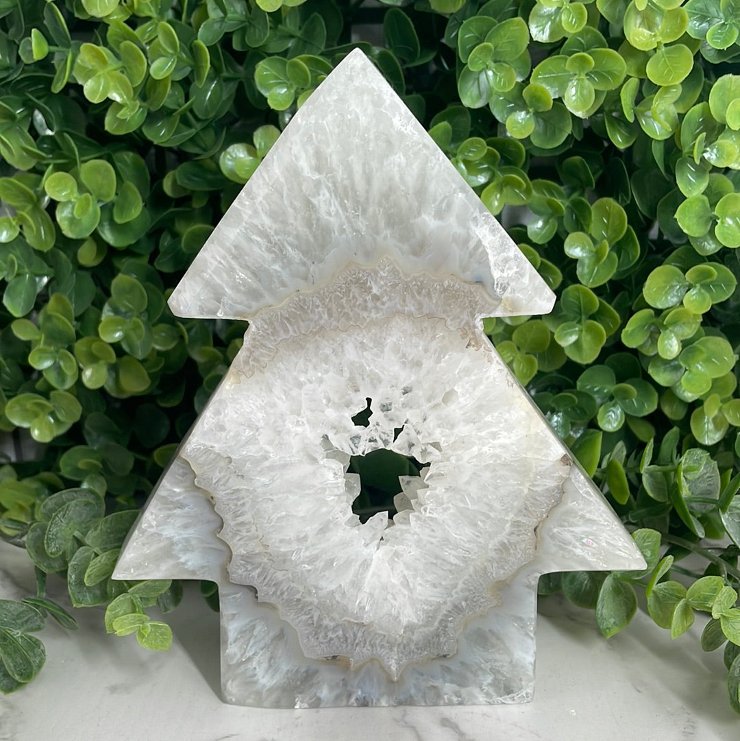 (1) Druzy Agate & Quartz Tree Carving measuring approximately 5 x 6 inches.