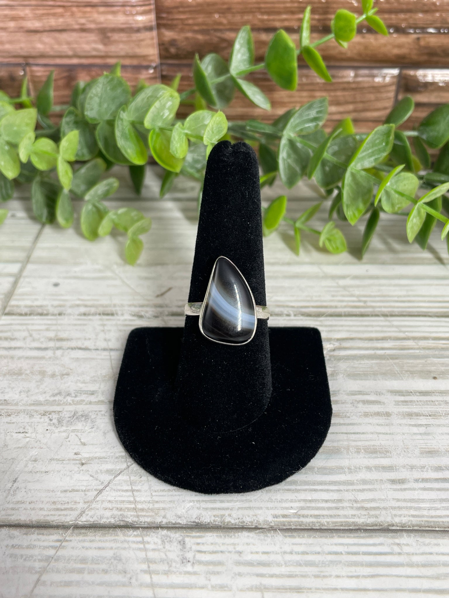 Black Banded Agate size 9 sterling silver ring