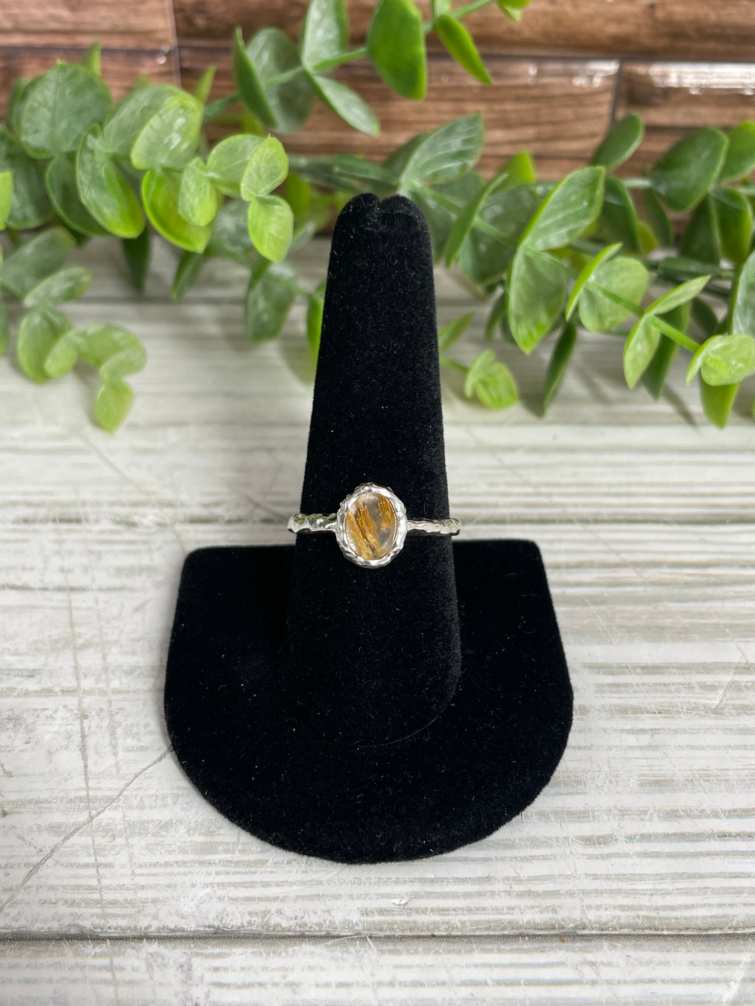 Rutilated Quartz SZ 9 Hammered Sterling Silver Ring