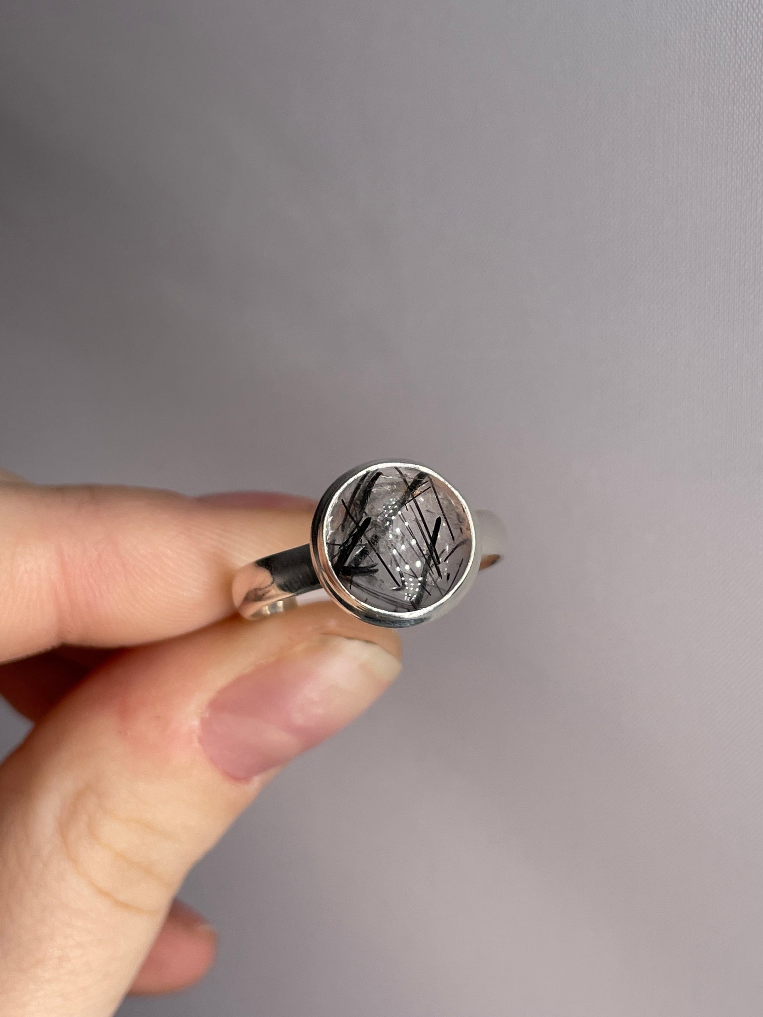 Tourmaline in Quartz SZ 11 sterling silver ring