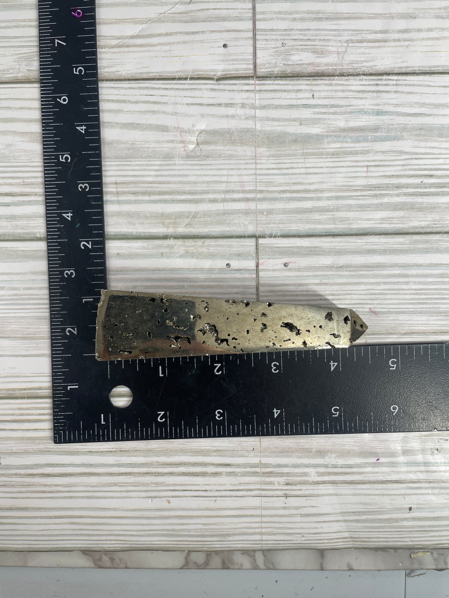 Pyrite tower measuring approximately 1 x 4.5 inches.
