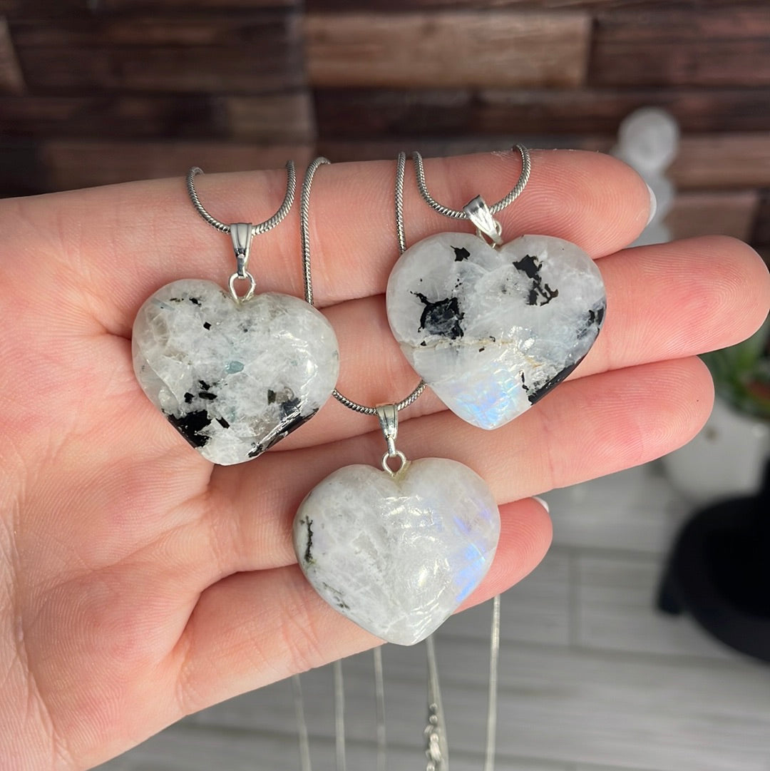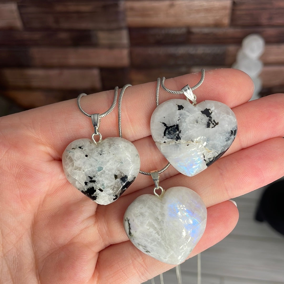 (1) Rainbow Moonstone heart necklace